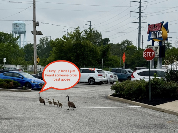 A Family of Geese Rushing to Leave the Empire Diner, Brooklawn–“Hurry up, kids, I just heard someone order roast goose!”