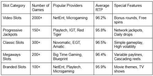 The following table demonstrates the comprehensive slot categories available to Mr O Casino players: