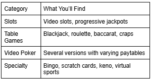 Casino Mate puts a decent spread of games on the table—over 650 titles. Slots carry the bulk of it, but you’ll find table classics, video poker, and a few odds and ends like keno or bingo.