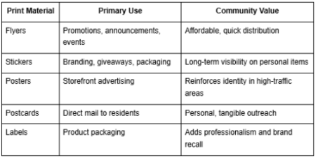 Trust is particularly valuable for small businesses competing with larger chains. Residents often prefer to support local establishments, but recognition and trust help drive repeat visits. Flyers and stickers support this process by keeping businesses visible in everyday life.