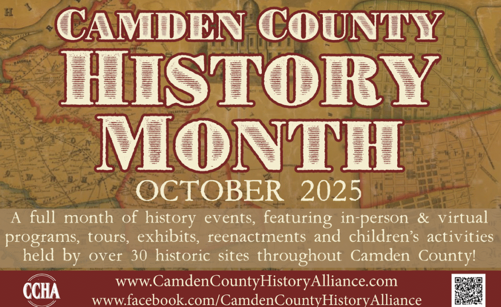 Camden NJ—The Camden County History Alliance invites the public to join us for Camden County History Month from October 1 to October 31, 2025, when over twenty participating historic sites and history organizations throughout Camden County will be open with special exhibits, reenactments, and guided tours for adults and children, both in-person and virtual, spanning centuries of history. The vast majority of the more than fifty events and activities during the month are free.