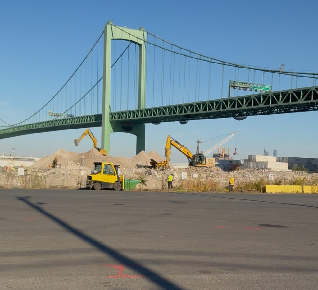 Workers continue to demolish buildings that once was the home of the Welsbach factory, now the Holt Marine Terminal at King and Essex Streets. (CNBNews photo)