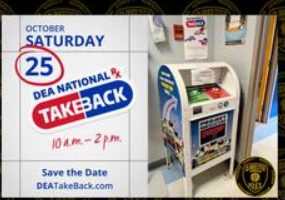 DEA’s National Prescription Drug Take Back Day is TODAY- Saturday, October 25, 2025, 10 AM to 2 PM at Gloucester Township Police Headquarters!