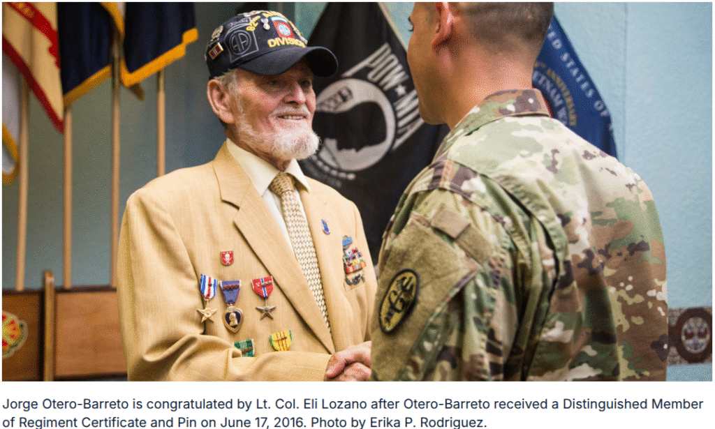 Otero-Barreto was a platoon sergeant in the 82nd Airborne Division and the 101st Airborne, serving from 1959 to 1970.