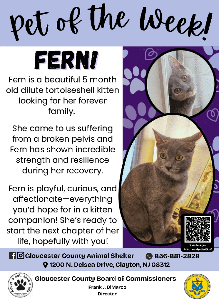 Gloucester County Animal Shelter, 856-881-2828. Apply to adopt: gloucestercountynj.gov/223/Our-Pet-List
