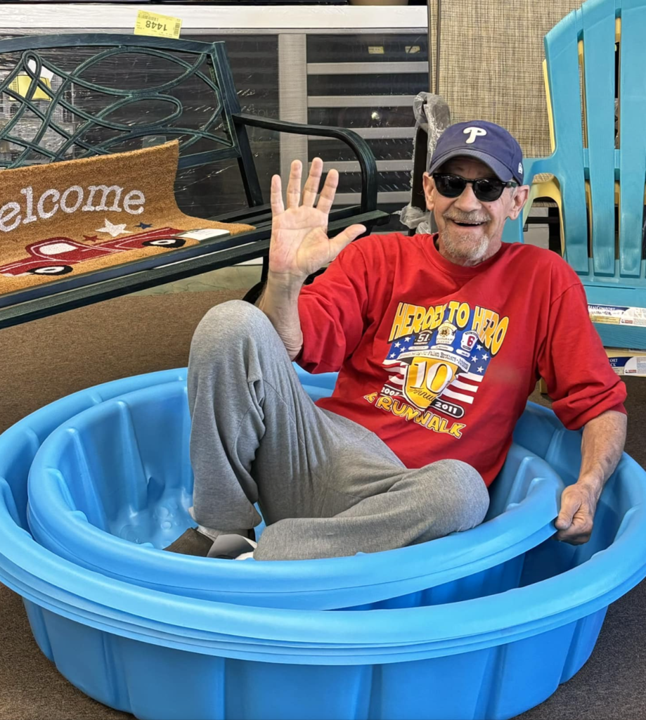 The man sitting in the swimming pool display at the store is unknown. We were told that he was a professional model hired by the pool manufacturer. His job, to show the public how to use the pool properly. I know it sounds silly, but that was what we were told. To think he is actually getting paid to do that. We think he should be wearing a swimsuit and flippers on his feet, and maybe a swim mask, but what do we know? What a great smile. What a great job. He reminds us of Mark Spitz, the Olympic gold medalist. There is a famous saying: find a job you like, and you will never work a day in your life. It looks like “he has found that job”. He looks very familar. I think I saw him once on QVC. If you can identify him, comment below.