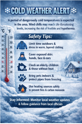 “As temperatures fall to dangerously low levels, it is critical that our residents have access to a safe place to stay warm,” said Commissioner Jonathan Young, liaison to the Camden County Department of Public Safety. “We urge everyone to check in on vulnerable neighbors, ensure heating systems are working properly, and bring pets indoors.”