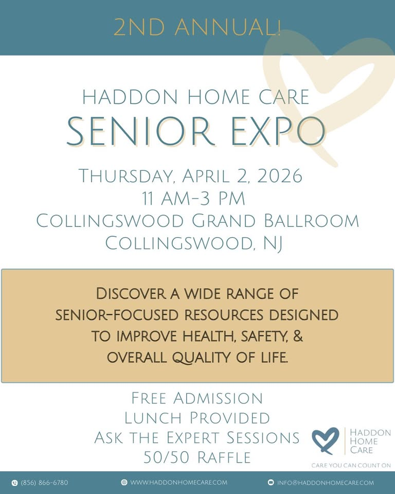 Whether you’re seeking information for yourself, a loved one, or simply want to learn more about services available in our area, the Haddon Home Care Senior Expo is a must-attend. There will also be raffles to benefit The Tender, a nonprofit providing an Alzheimer’s Respite Social Day Care Program.
