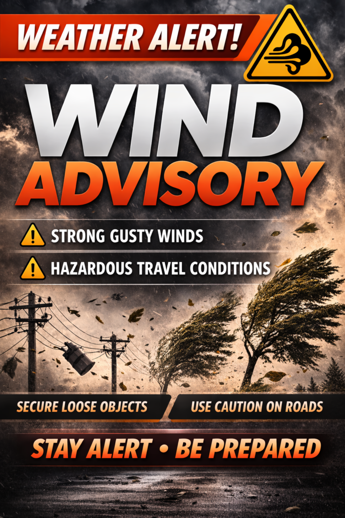 Instructions: Winds this strong can make driving difficult, especially for high profile vehicles. Use extra caution.