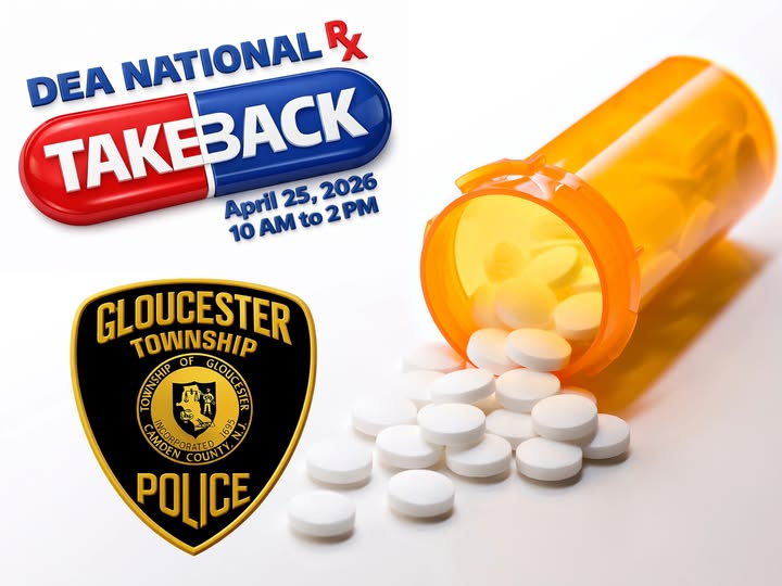 HAPPENING NEXT WEEK! – DEA’s National Prescription Drug Take Back Day is Saturday, April 25, 2026, 10 AM to 2 PM at Gloucester Township Police Headquarters!
